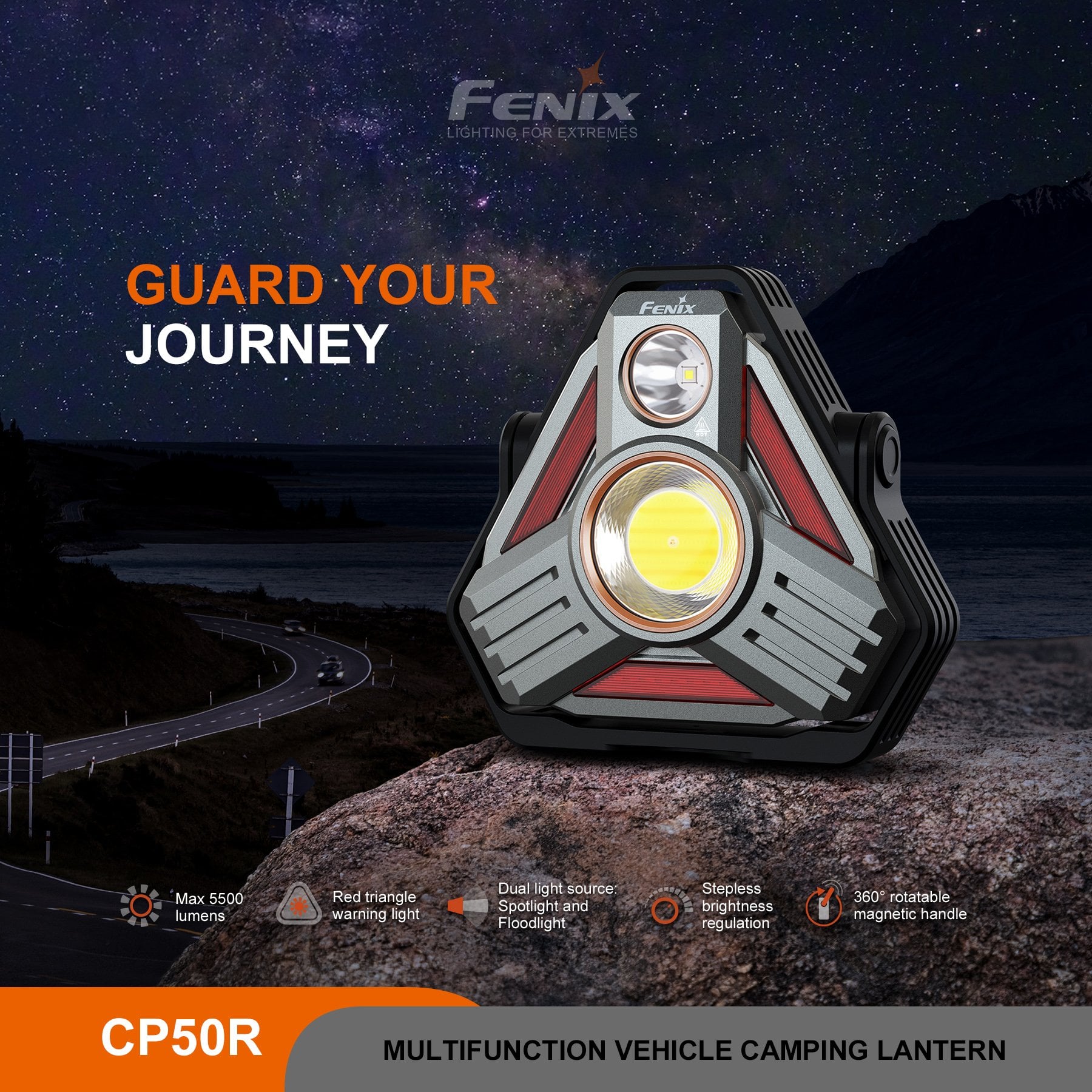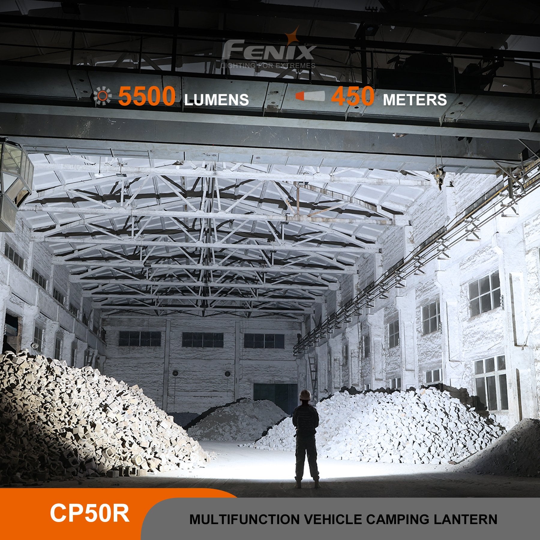 Fenix CP50R, araç üstü kamp, overland, outdoor aktiviteler ve profesyonel kullanım için tasarlanmış çok fonksiyonlu ve yüksek güçlü bir kamp feneridir. 5500 lümen maksimum ışık çıkışı ve 450 metreye kadar aydınlatma mesafesi ile hem geniş alan aydınlatması hem de uzun mesafe görüş gerektiren durumlar için güçlü bir çözüm sunar.