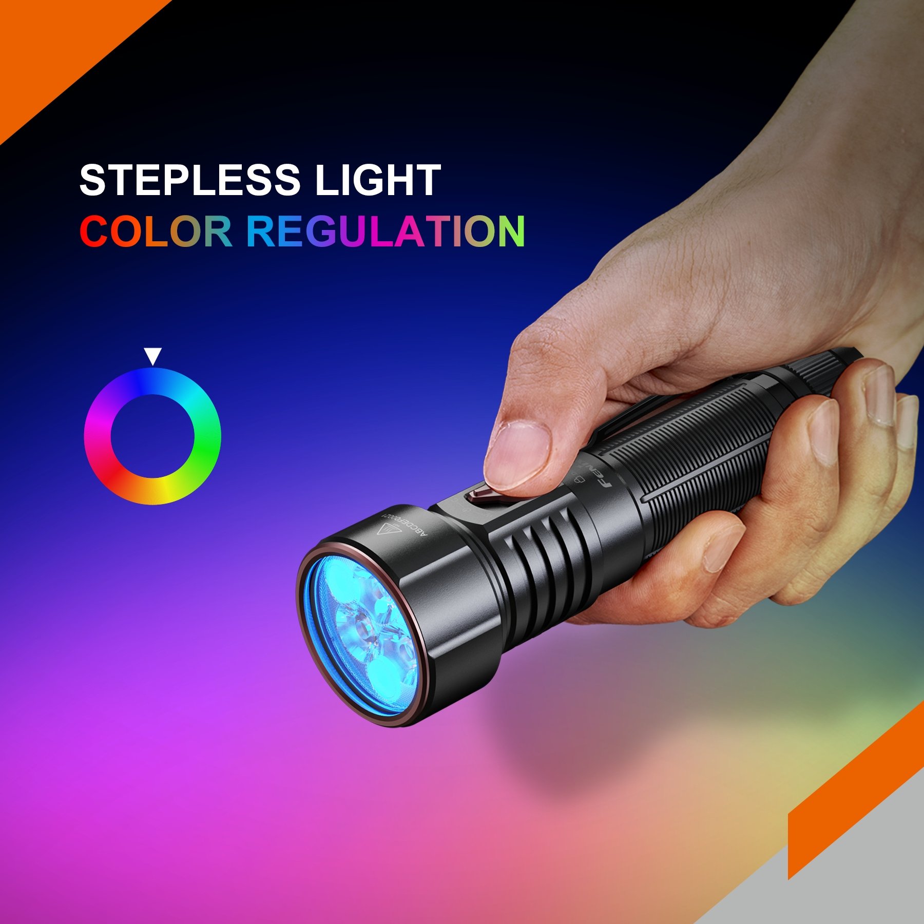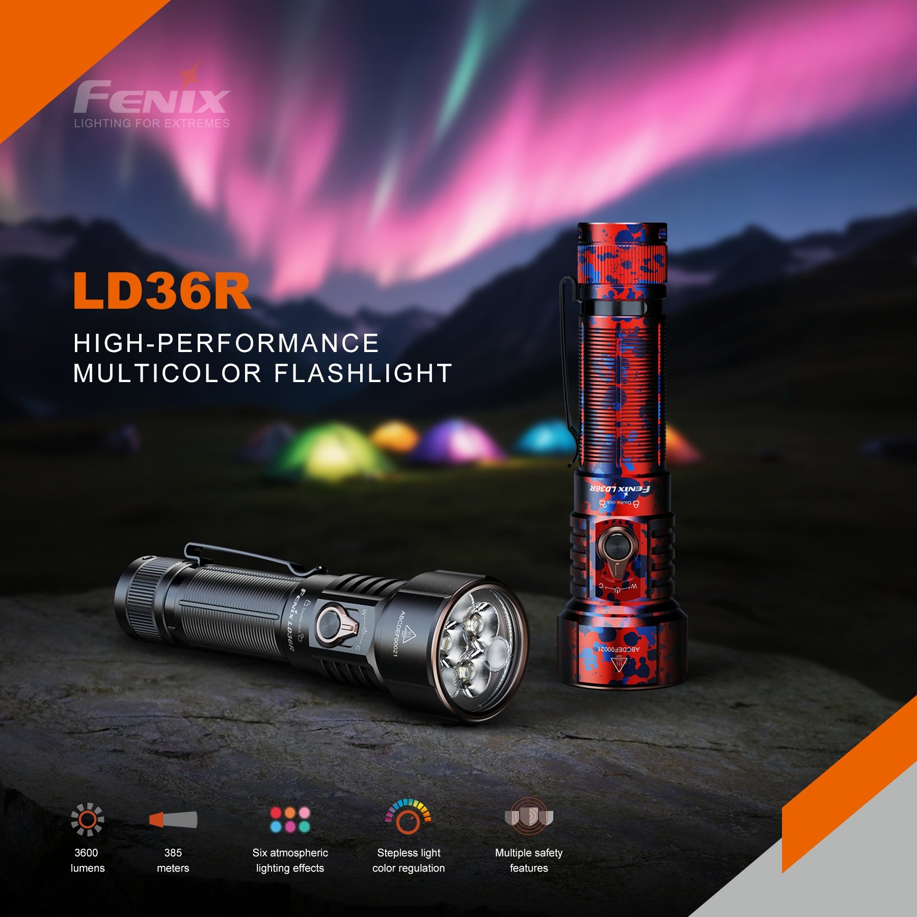 Fenix LD36R, yüksek ışık gücü ve çok renkli aydınlatma seçeneklerini bir araya getiren, çok amaçlı ve modern bir el feneridir. 3600 lümen maksimum ışık çıkışı ve 385 metreye kadar aydınlatma mesafesi, güçlü ve net bir görüş sunarak outdoor aktivitelerden profesyonel çekimlere kadar geniş bir kullanım alanı sağlar.